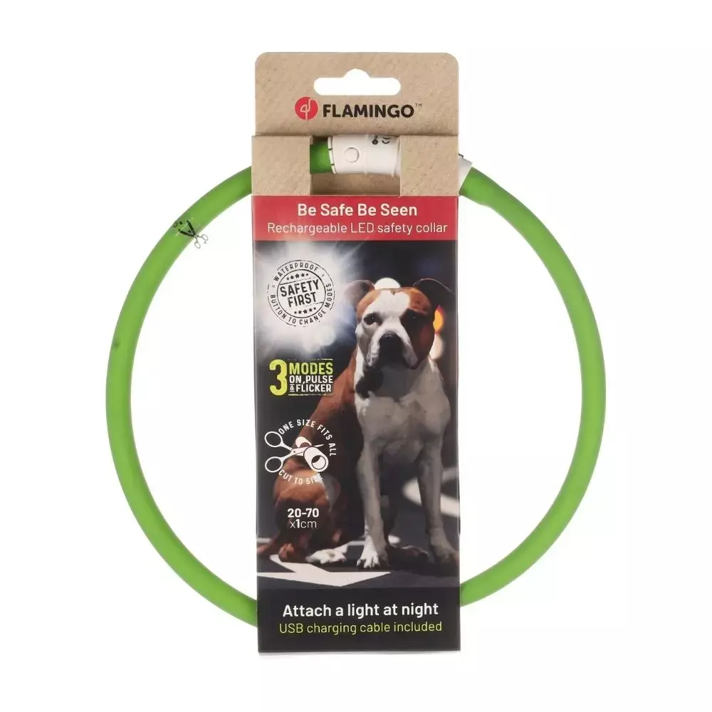 FLMG drošības kakla siksna "VISIO LIGHT BASIC" silikona ar LED zaļa 20-70 cm x 10 mm.